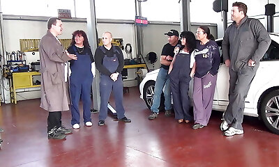 Gang-fuck in the Mechanic's Workshop