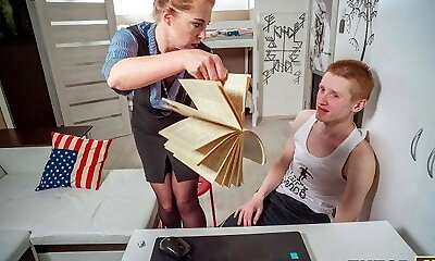 Naughty teacher seduces horny schoolgirl, he can't take it and fucks her enormous pussy truly stiff until he cums on her big tits