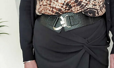 Going to work in a blouse, skirt ,stockings and heels. Ready for my younger boss to inspect my mature tits, ass and shaved beaver.
