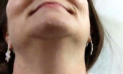 Sexy mature blonde in lingerie masturbates by screwing her cootchie with a G spot vibrating dildo