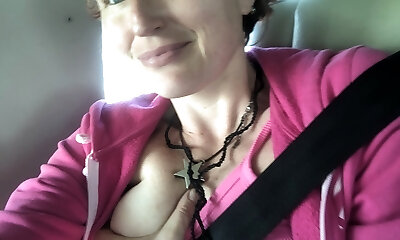 Cheerful housewife Lukerya hotly flirts with fans on webcam, managing innate hanging boobs without the help of arms